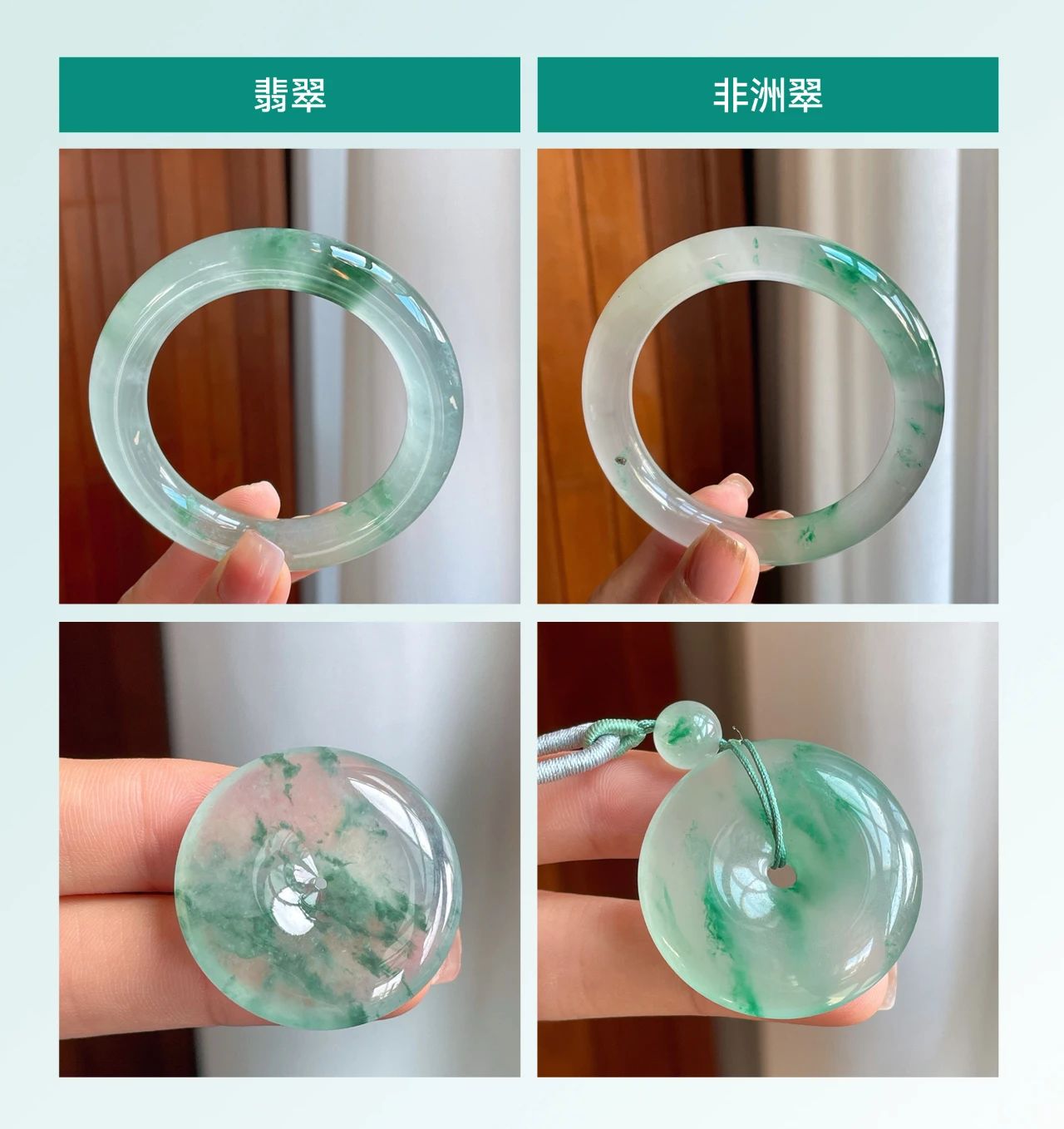 从科学的角度来看,二者在成分、结构和物理性质上有着不同。但从品相及观赏性来说两者有很大的相似性,尤其是玻璃种、冰飘花的非洲翠,跟翡翠非常接近!正因为如此,加上价格亲民,非洲翠快速打开了市场。